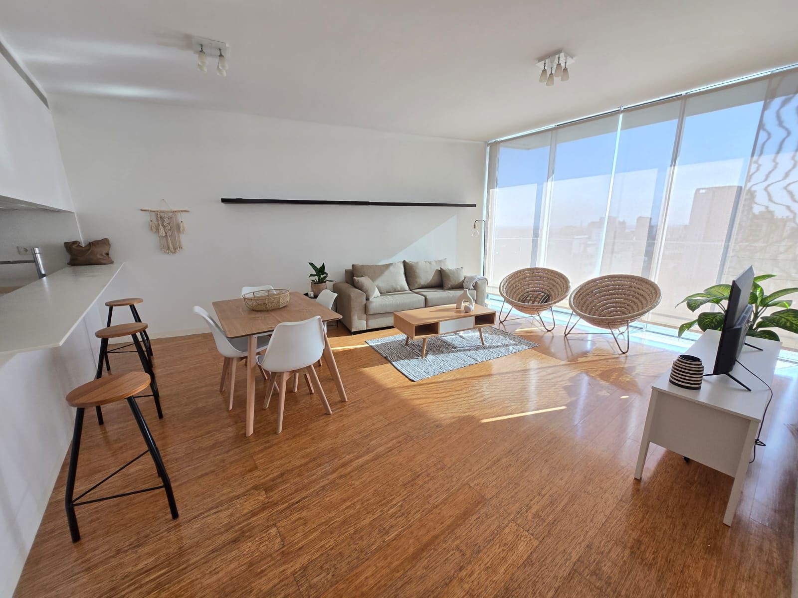 – Sala com vista para a cidade, ponte e mar