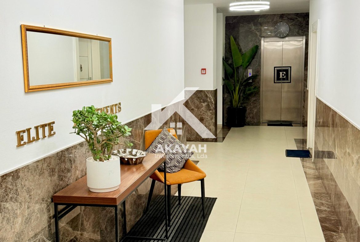 Apartamento T2 mobilado, localizado no condomínio Elite Apartments, disponível para arrendamento.