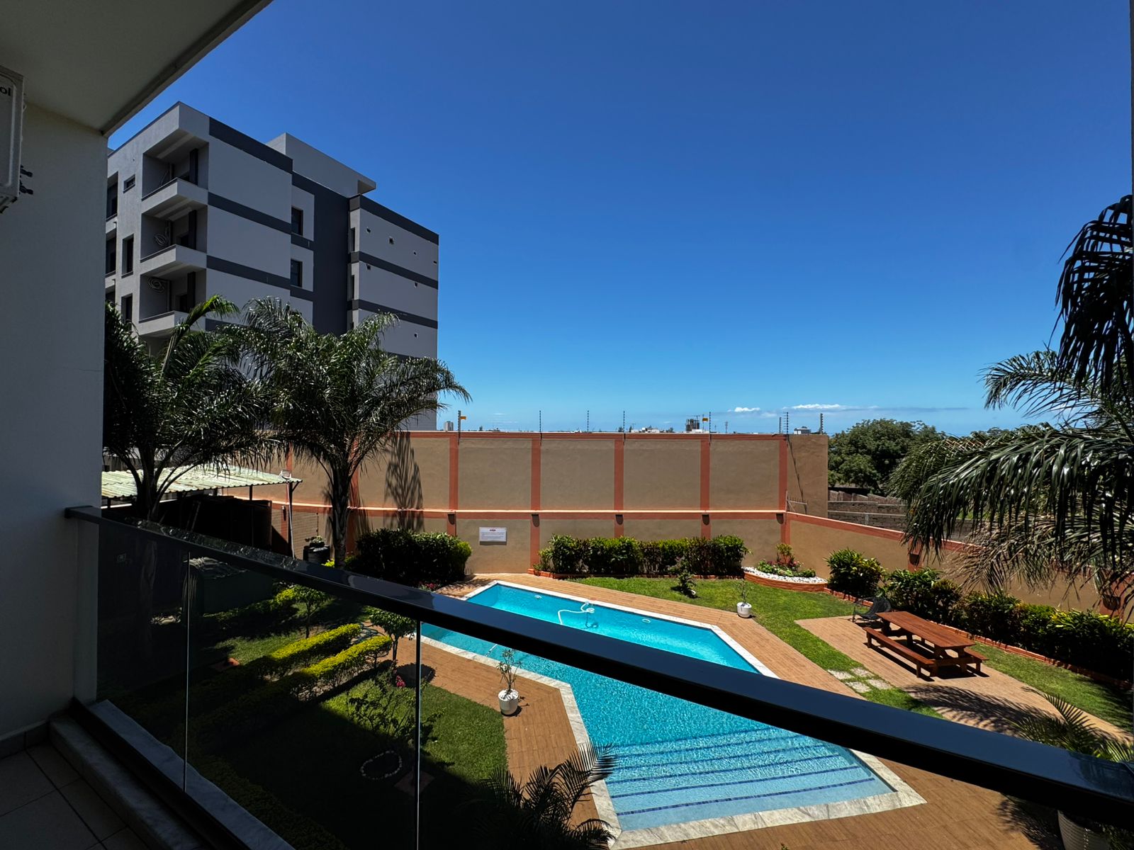 Apartamento T2 mobilado, localizado no condomínio Rosa, avenida Julies Nyerere – Sommerschield 2, próximo ao Hospital Privado e às escolas Portuguesa e Francesa, disponível para arrendamento.