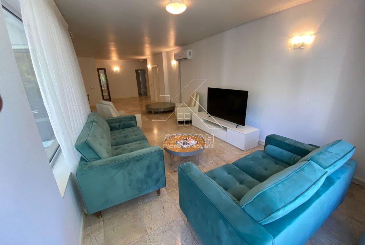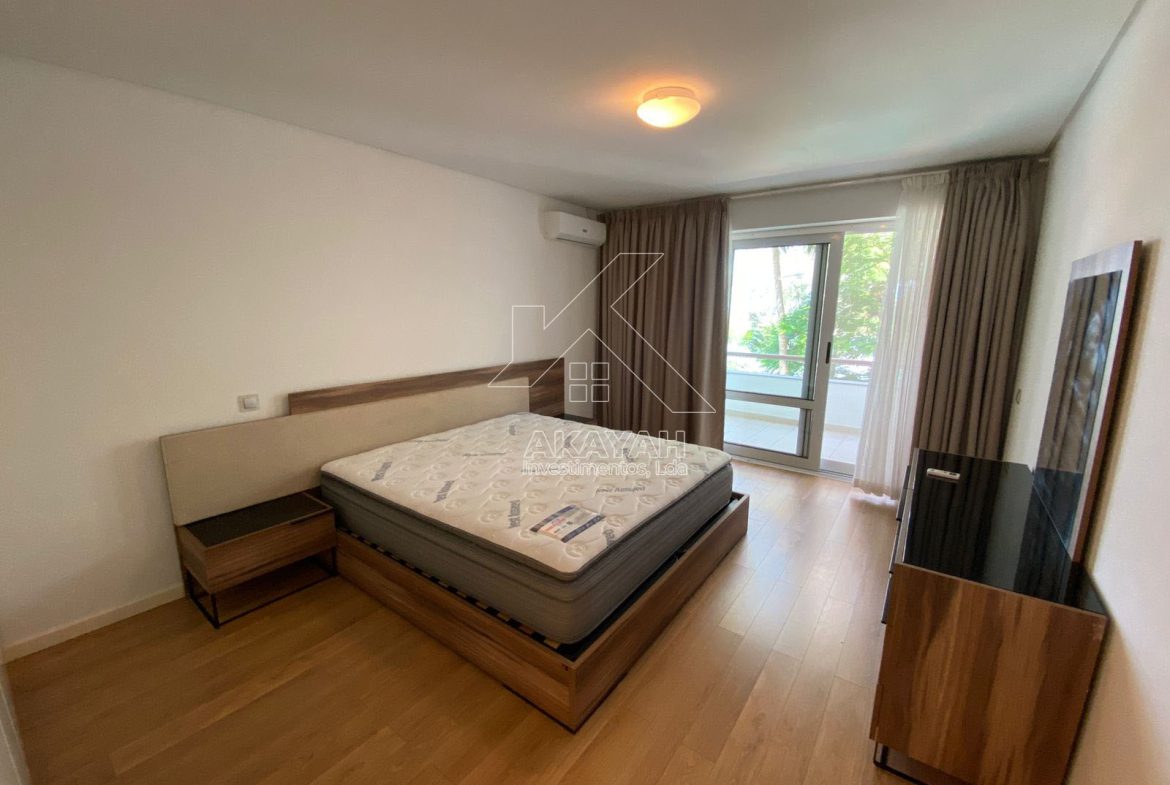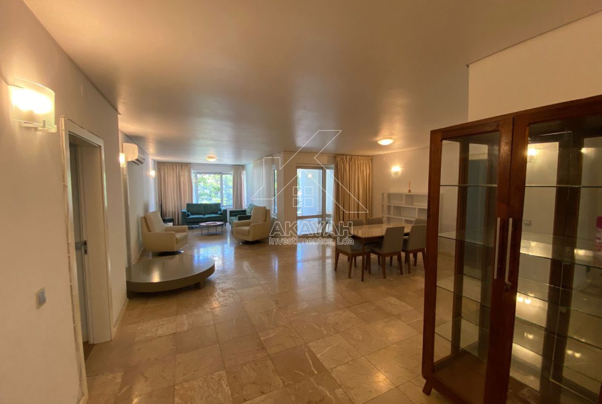 Apartamento T3 mobilado, localizado no condomínio Minhêmbéti, avenida Friedrich Engels, disponível para arrendamento.