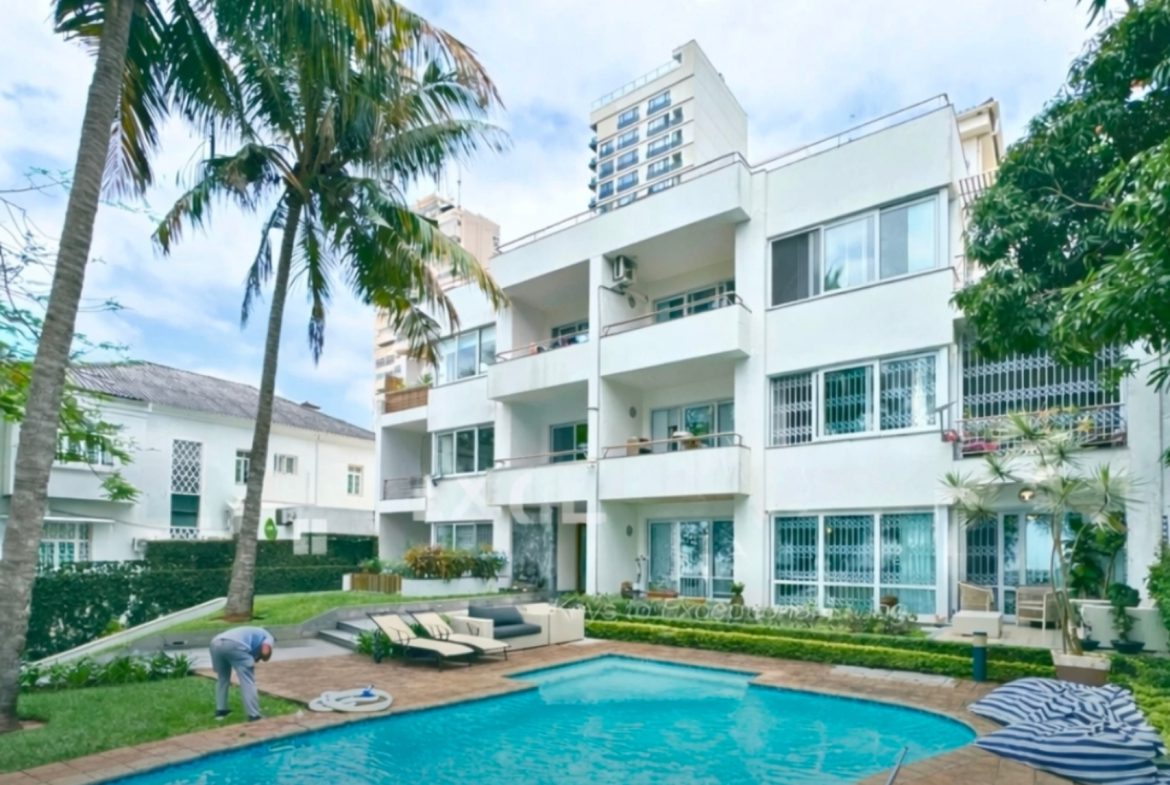 Apartamento T3 com 3 suítes totalmente mobilado, localizado na prestigiada Polana, avenida Friedrich Engels, inserido num condomínio exclusivo com apenas 7 apartamentos, disponível para arrendamento.