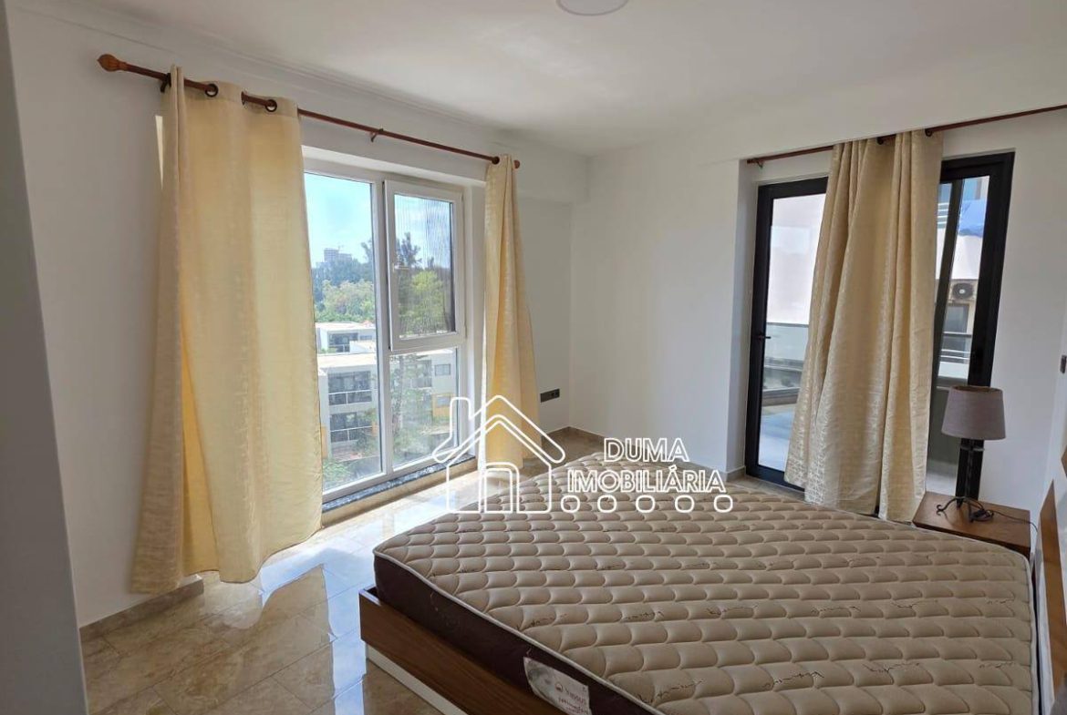 Apartamento T3 localizado no condomínio Parkmoza, no bairro Sommerschield 2, avenida Marginal, disponível para arrendamento.