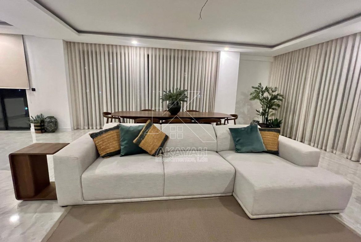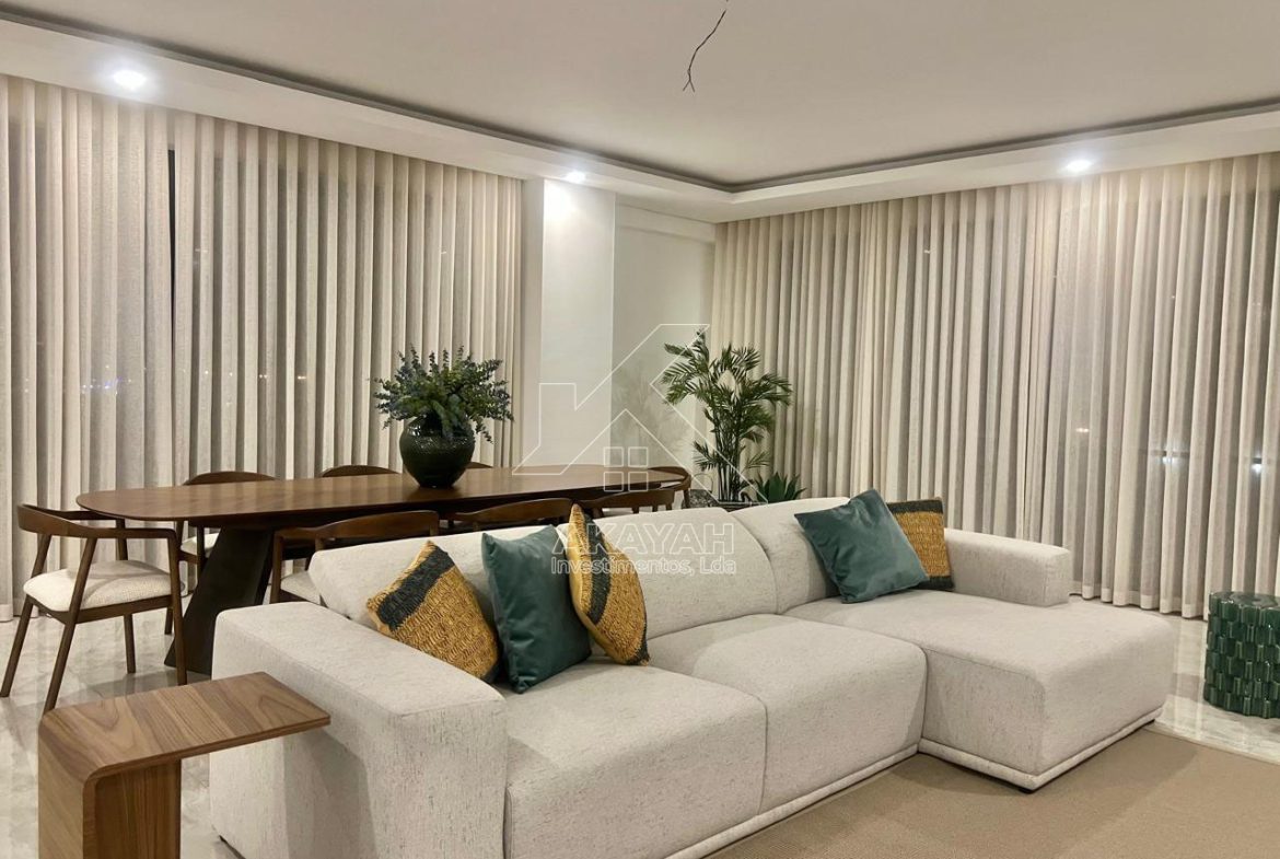 Apartamento T4 mobilado, localizado no condomínio Aura Residence, disponível para arrendamento.