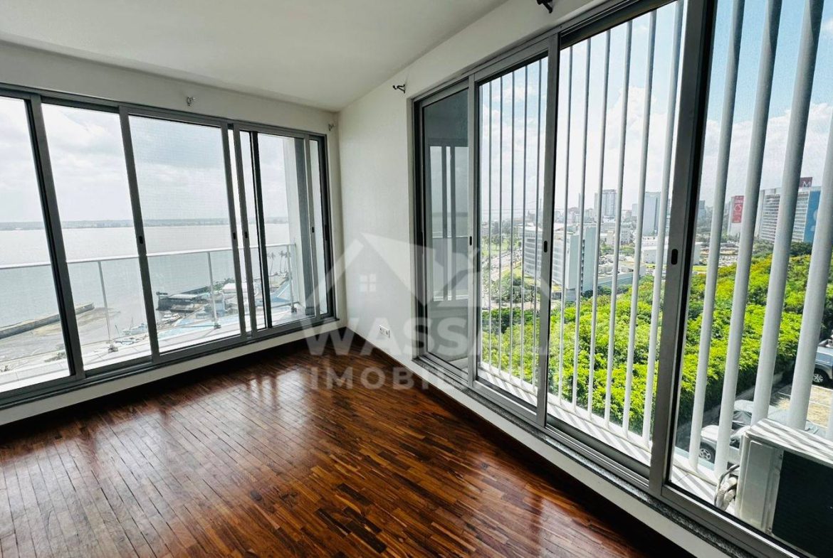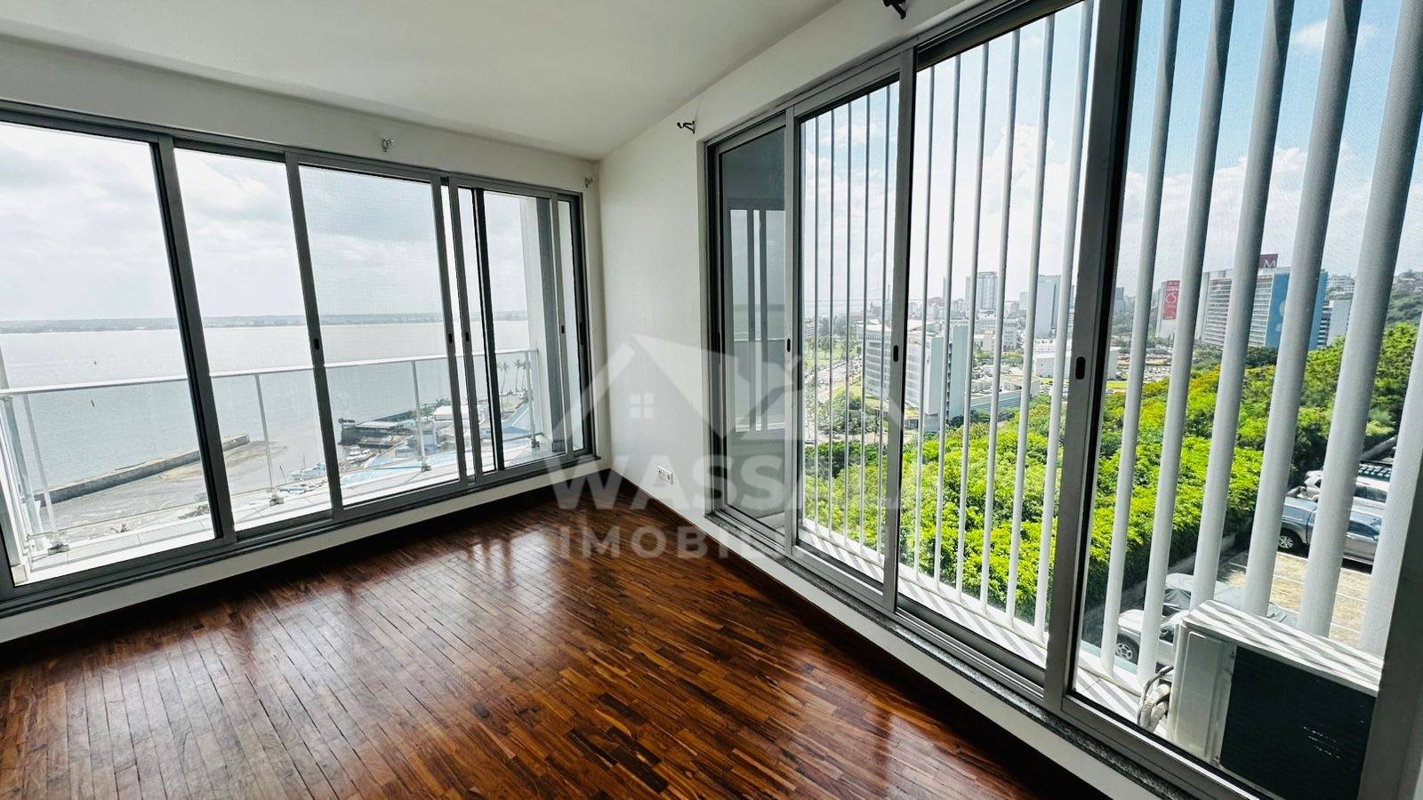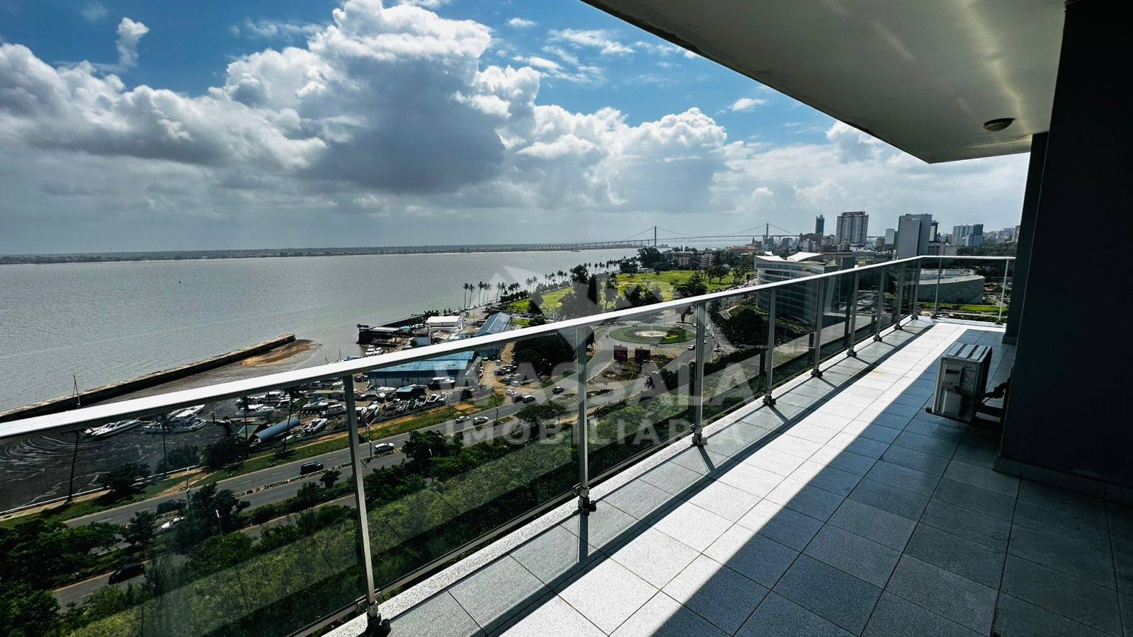 * Sala ampla com acesso á varanda tem vista mar;