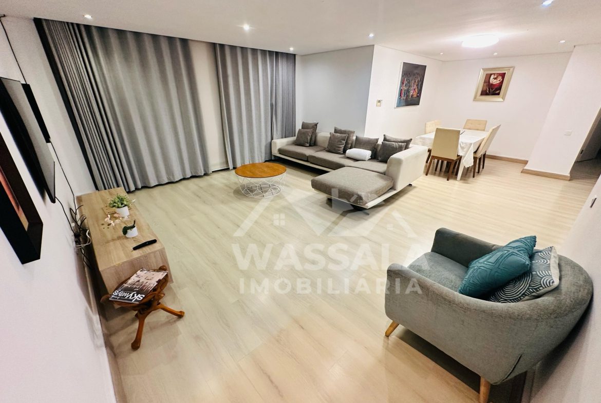 Luxuoso apartamento T3 mobilado, localizado no Shopping Mares, disponível para arrendamento.