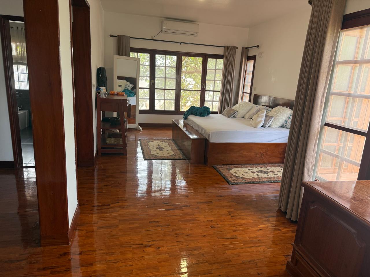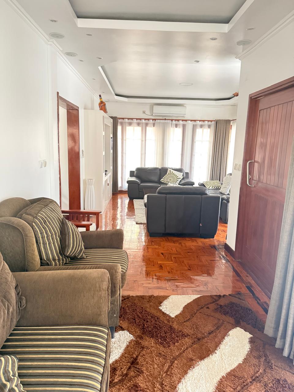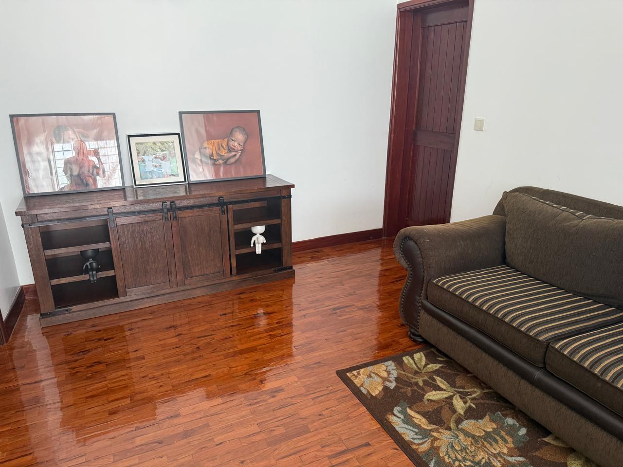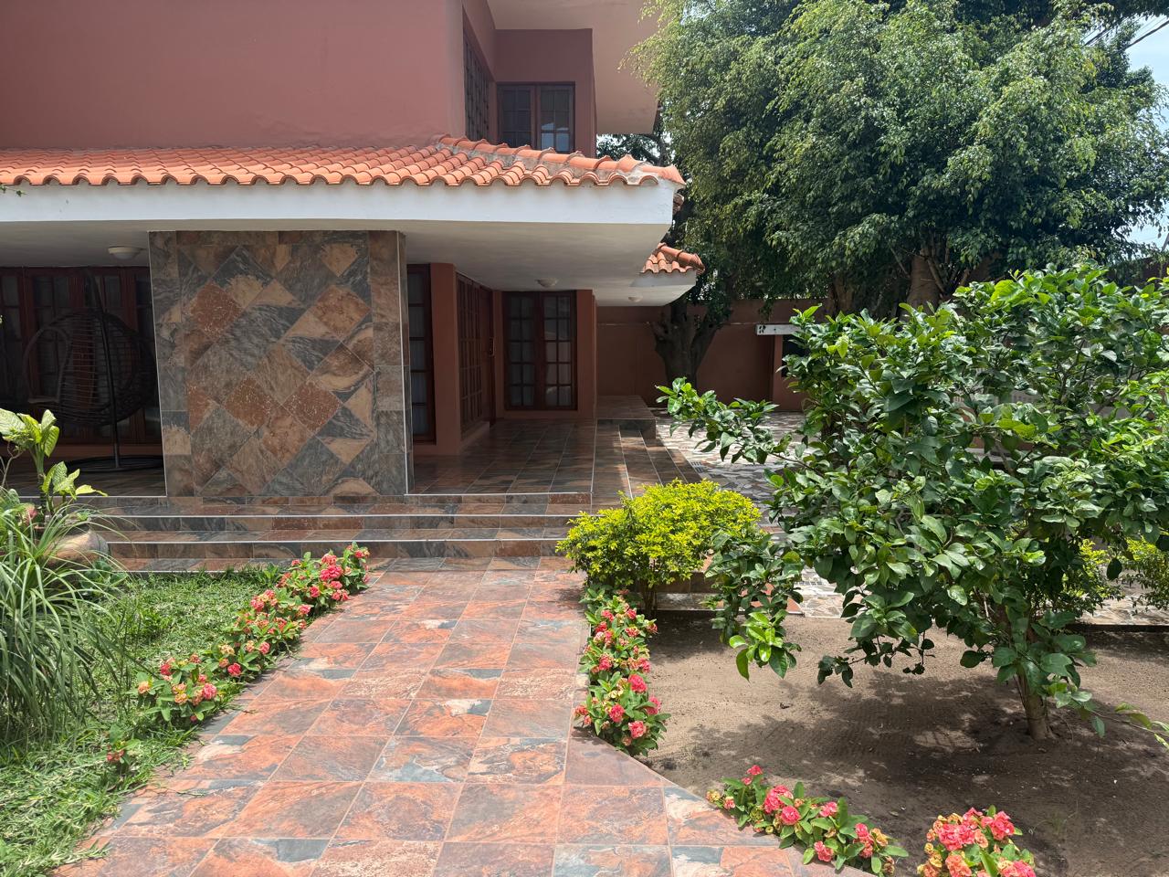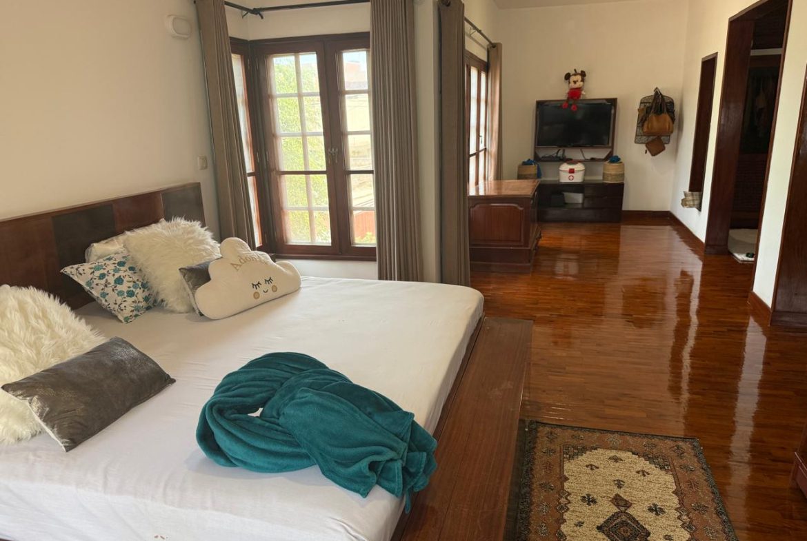 Moradia T4 localizado no bairro do Triunfo Novo, rua dos Cavalos, perto ao restaurante Buso. Disponível para arrendamento.