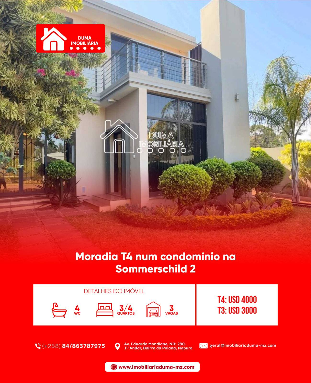 Moradia T4 localizado na Sommerschield 2, disponível para arrendamento.